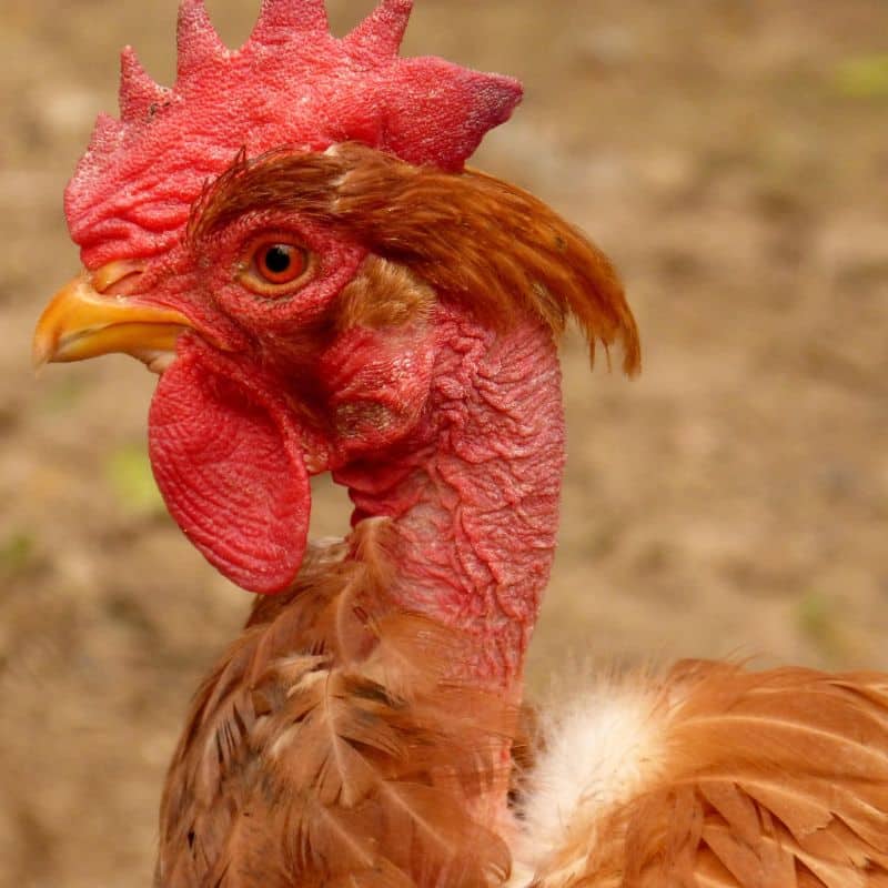 Aussi appelée poulet roux cou nu, cette race de volaille possède un joli plumage roux et se différencie par la nudité de son cou. En effet, le poulet rouge cou nu est une variété hybride issue de nombreux croisements, provoquant ainsi une absence de plumes sur le cou, les cuisses et une partie du bréchet. En revanche, cette particularité lui offre une grande résistance à la chaleur et au froid.